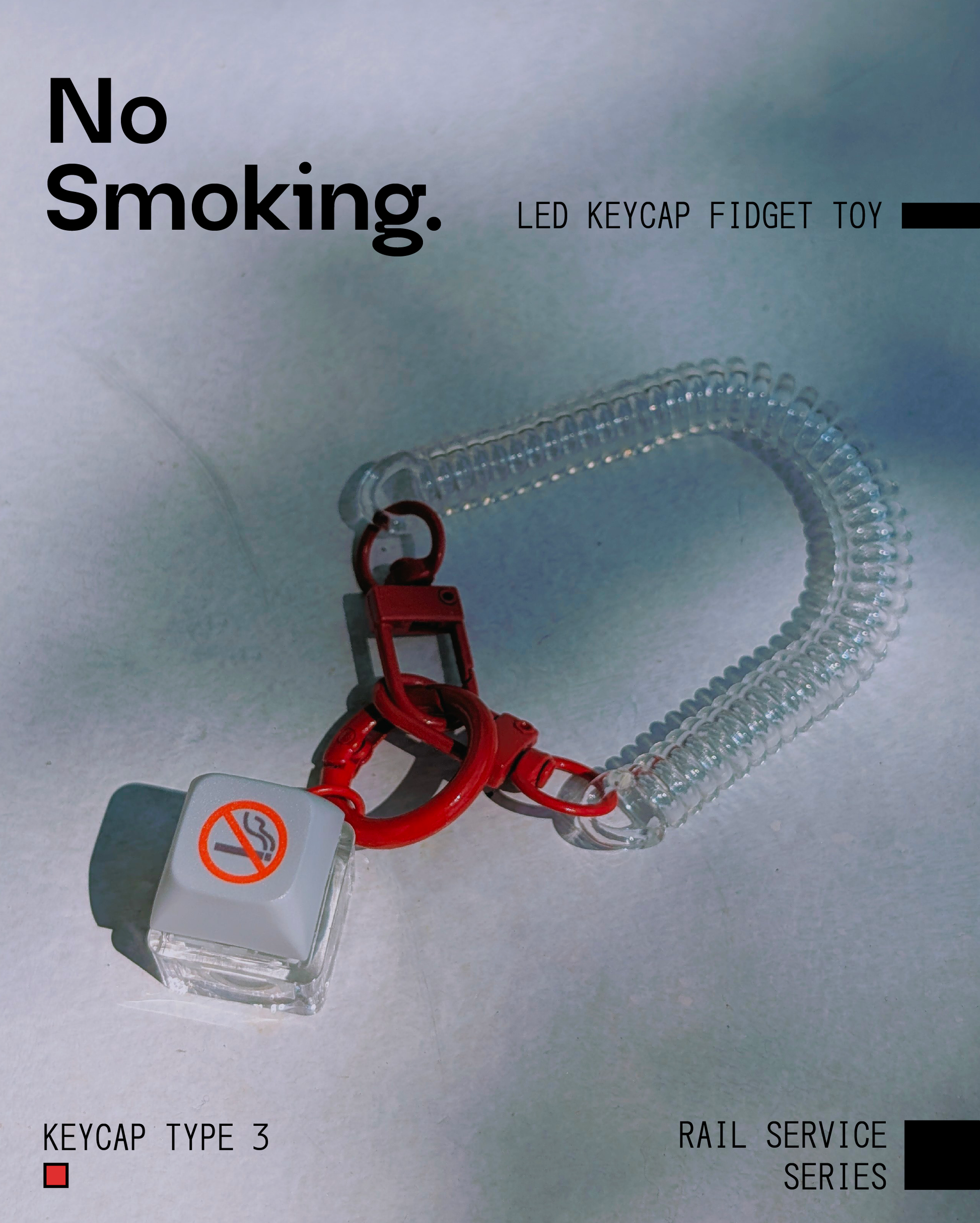 An LED battery powered keycap fidget toy. Metal clasps and detachable cord included.
